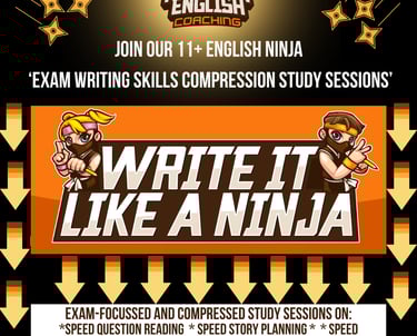 My signature 5-week live 'Write It Like A Ninja!' small-group creative writing course runs online over Saturday mornings throughout the year and is ideal for both 9 to 12-year-olds who want to get 11-plus ready and for keen writers who still want to improve their story writing further.